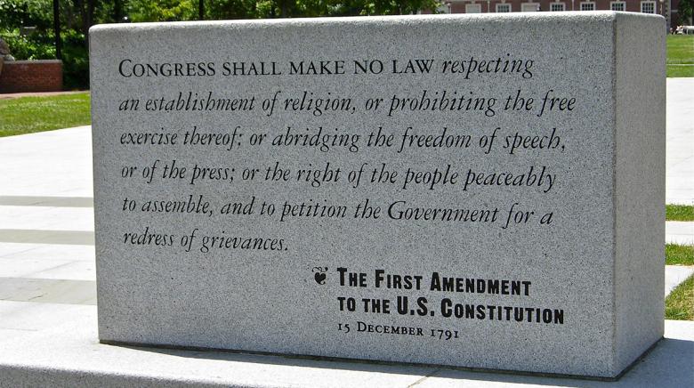 Congress shall make no law respecting an establishment of religion, or prohibiting the free exercise thereof; or abridging the freedom of speech, or of the press; or the right of the people peaceably to assemble, and to petition the Government for a redress of grievances.