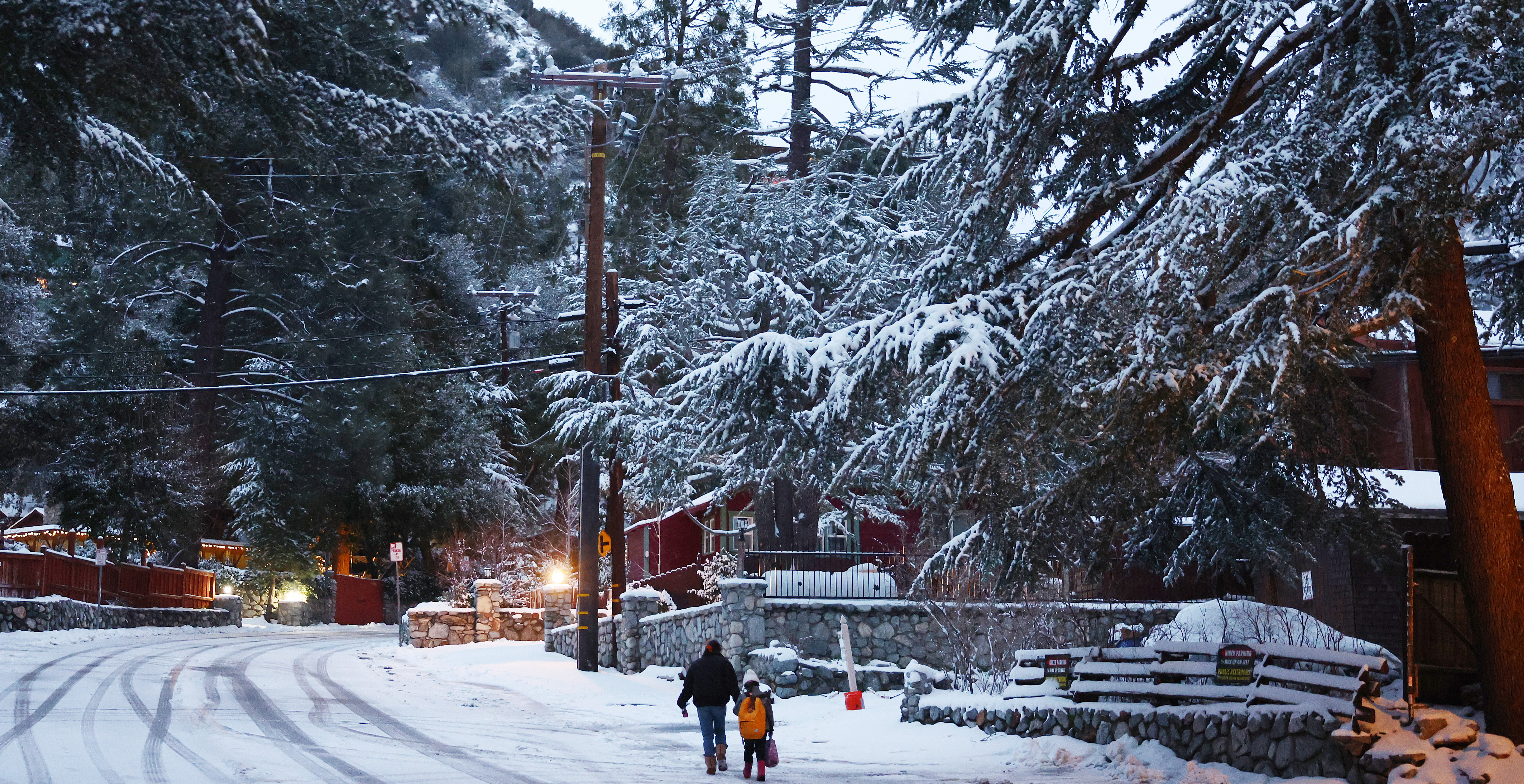 At Lake Arrowhead Village, snowbanks surrounded a block of stores. Plow crews cleared a parking lot at a Stater Bros., one of the few places in the area where residents can stock up on supplies.