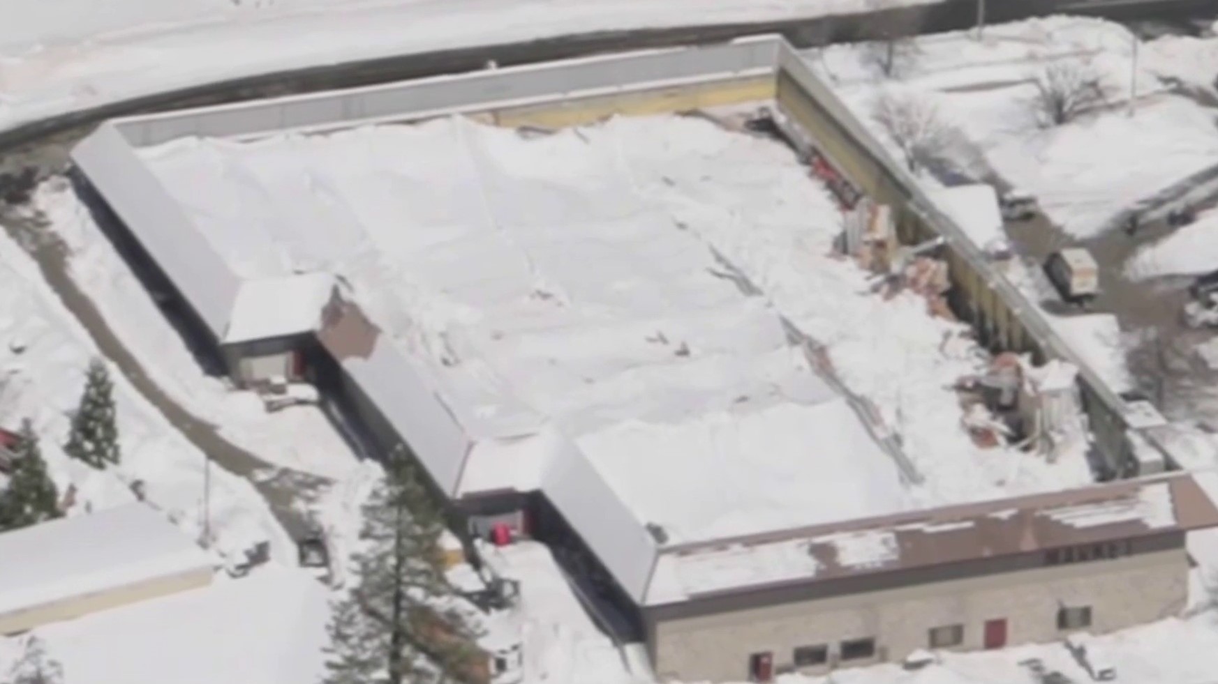 The roof of a grocery store in Crestline collapsed Wednesday under the weight of snow that piled several feet high.